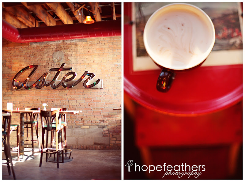Last weekend we walked through St. Anthony Main for some fun winter wonderland inspired engagement photos! Of course, it was freezing! I mean, it is January in Minnesota for pete's sake. So we warmed up in a cute little café and enjoyed some cocoa.